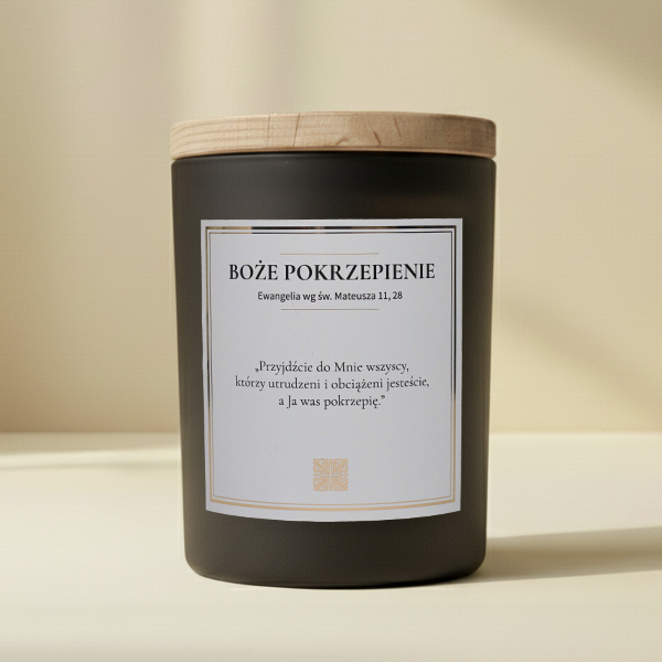 Przeznaczenie: „Boże Pokrzepienie” to świeca dla chwil zmęczenia i poszukiwania siły. Jej płomień przypomina o Jezusowym zaproszeniu: „Przyjdźcie do Mnie, a Ja was pokrzepię.” To idealny dar dla tych, którzy potrzebują wytchnienia – znak, że w Bożej obecności serce człowieka odnajduje spokój, a dusza nowe siły.