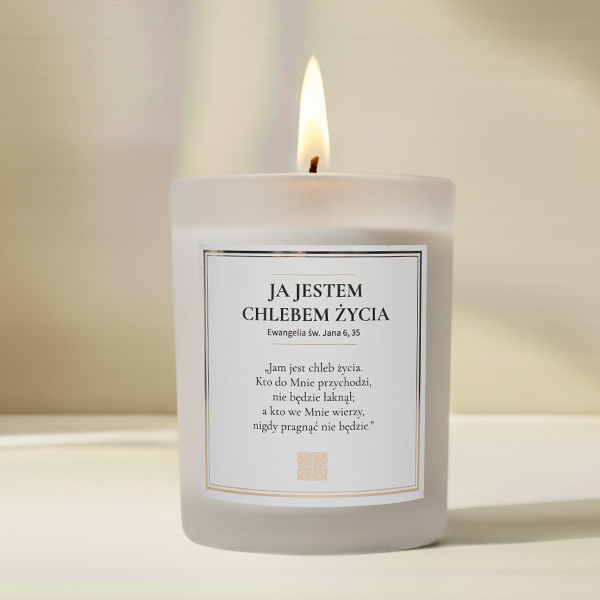 Przeznaczenie: „Ja jestem Chlebem Życia” to świeca, która przypomina o obecności Jezusa w Eucharystii – pokarmie duszy i źródle pokoju. Jej płomień symbolizuje dar, który syci serce i daje prawdziwe życie.