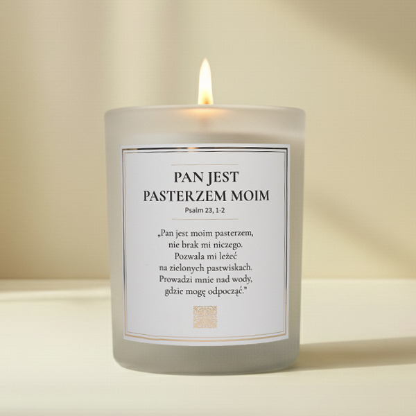 Przeznaczenie: „Pan jest Pasterzem moim” to świeca, która przypomina, że Jezus – Dobry Pasterz – prowadzi przez życie z troską i miłością. Jej płomień symbolizuje Jego obecność w Eucharystii i w sercu dziecka, które po raz pierwszy przyjmuje Go jako Chleb Życia.